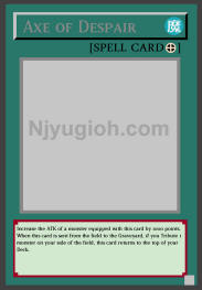 Comments: Stick to Axe of Despair as it gives the equipped Monster twice the ATK and can be returned to your deck.