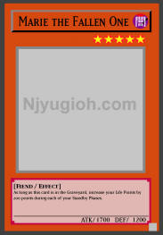 Marie the Fallen One DARK / Fiend / Level 5 / ATK 1700 / DEF 1200 As long as this card is in the Graveyard, increase your Life Points by 200 points during each of your Standby Phases. COMMON |