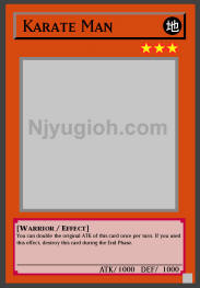 Comments: At most, he'll be able to mow down 1 Monster (if lucky) and he will be destroyed by his own effect. His stats of (1000/1000) certainly don't indicate a real karate man's strength.