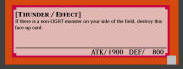 Thunder Nyan Nyan LIGHT / Thunder / Level 4 / ATK 1900 / DEF 800 If there is a non-LIGHT monster on your side of the field, destroy this face-up card. COMMON |