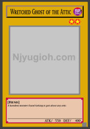 Wretched Ghost of the Attic DARK / Fiend / Level 2 / ATK 550 / DEF 400 A harmless monster found lurking in just about any attic. COMMON |
