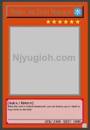 Mobius the Frost Monarch WATER / Aqua / Level 6 / ATK 2400 / DEF 1000 When this card is Tribute Summoned, you can destroy up to 2 Spell or Trap Cards on the field. RARE |