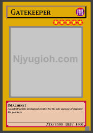 Gatekeeper DARK / Machine / Level 5 / ATK 1500 / DEF 1800 An indestructible mechanoid created for the sole purpose of guarding the gateways. COMMON |