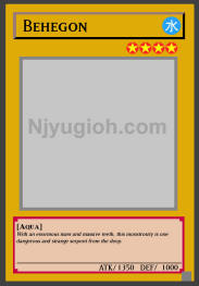 Behegon WATER / Aqua / Level 4 / ATK 1350 / DEF 1000 With an enormous maw and massive teeth, this monstrosity is one dangerous and strange serpent from the deep. COMMON |