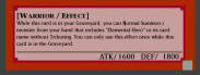 | Comments: | No Monsters to protect you? Not a problem with this card as you automatically get 1 1600 ATK Monster just by activating it! |