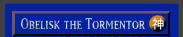 Obelisk the Tormentor (original artwork) DIVINE / Divine-Beast / Level 10 / ATK 4000 / DEF 4000 The descent of this mighty creature shall be heralded by burning winds and twisted land. And with the coming of this horror, those who draw breath shall know the true meaning of eternal slumber. PRISMATIC SECRET RARE |
