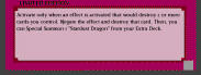Activate only when an effect is activated that would destroy 2 or more cards you control. Negate the effect and destroy that card. Then, you can Special Summon 1 "Stardust Dragon" from your Extra Deck.