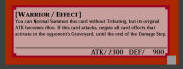 | Comments: | So he's got a built-in, one-sided Ring of Destruction but can only target face up monsters and even if he hits your opponent's last monster, he can't attack directly that turn. |