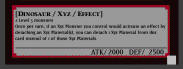 Number 61: Volcasaurus FIRE / Dinosaur-Type Xyz / Rank 5 / ATK 2500 / DEF 1000 2 Level 5 monsters Once per turn: You can detach 1 Xyz Material from this card to target 1 face-up monster your opponent controls; destroy that opponent's monster, and if you do, inflict damage to your opponent equal to the destroyed monster's original ATK. This card cannot attack your opponent directly during the turn you activate this effect. ULTRA RARE |