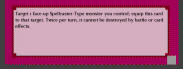 | Comments: | He delivers String Counters to all other monsters in play and gets rid of those monsters, dealing 500 damage to your opponent for each but it doesn't activate until the end of your opponent's next turn. |