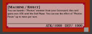 | Comments: | He can start off your turn with 3000 ATK but come turn's end, there's two less Photon monsters in your Grave and he's back to his weak old self. |