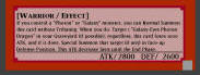 Dododo Warrior EARTH / Warrior / Level 6 / ATK 2300 / DEF 900 You can Normal Summon this card without Tributing, but its original ATK becomes 1800. If this card attacks, negate all card effects that activate in the opponent's Graveyard, until the end of the Damage Step. SUPER RARE |