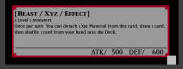 | Comments: | Although he starts off at a decent 1800 ATK, he gets weaker each time his unrestricted Fissure effect is triggered, which isn't optional. |