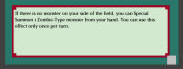 If there is no monster on your side of the field, you can Special Summon 1 Zombie-Type monster from your hand. You can use this effect only once per turn.