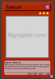 Sangan DARK / Fiend / Level 3 / ATK 1000 / DEF 600 When this card is sent from the field to the Graveyard, select 1 monster with an ATK of 1500 or less from your Deck, show it to your opponent, and add it to your hand. Then shuffle your Deck. SUPER RARE |