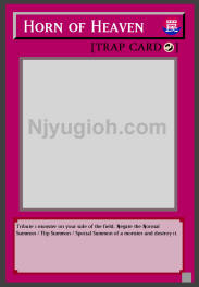Horn of Heaven Counter Trap Tribute 1 monster on your side of the field. Negate the Normal Summon / Flip Summon / Special Summon of a monster and destroy it. SUPER RARE |
