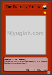 The Unhappy Maiden LIGHT / Spellcaster / Level 1 / ATK 0 / DEF 100 When this card is sent to the Graveyard as a result of battle, the Battle Phase for that turn ends immediately. SUPER RARE |
