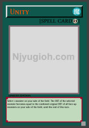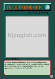 Offer your opponent a handshake. If they accept your handshake, each player's Life Points become half the combined Life Points of both players. If you have "Unity" in your hand and show it to your opponent, they must accept the handshake.