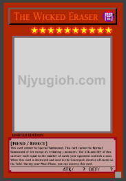 This card cannot be Special Summoned. This card cannot be Normal Summoned or Set except by Tributing 3 monsters. The ATK and DEF of this card are each equal to the number of cards your opponent controls x 1000. When this card is destroyed and sent to the Graveyard, destroy all cards on the field. During your Main Phase, you can destroy this card.