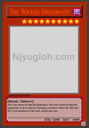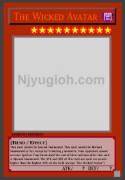 This card cannot be Special Summoned. This card cannot be Normal Summoned or Set except by Tributing 3 monsters. Your opponent cannot activate Spell or Trap Cards until the end of their 2nd turn after this card is Normal Summoned. The ATK and DEF of this card are each 100 points higher than the highest ATK on the field (except "The Wicked Avatar").
