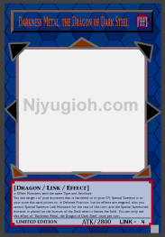 Darkness Metal, the Dragon of Dark Steel DARK / Dragon-Type Link / ATK 2800 / Link-4 Active Link Arrow(s): Top, Bottom, Bottom-Left and Bottom-Right 2+ Effect Monsters with the same Type and Attribute You can target 1 of your monsters that is banished or in your GY; Special Summon it to your zone this card points to, in Defense Position, but its effects are negated, also you cannot Special Summon Link Monsters for the rest of this turn, and the Special Summoned monster is placed on the bottom of the Deck when it leaves the field. You can only use this effect of "Darkness Metal, the Dragon of Dark Steel" once per turn. ULTRA RARE |
