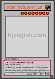Judgment, the Dragon of Heaven LIGHT / Dragon-Type Synchro / Level 8 / ATK 3000 / DEF 2600 1 Tuner + 1+ non-Tuner monsters If you Synchro Summon this card, all materials must be the same Attribute. Once per turn, if you have 4 or more Tuners with different names in your GY and control this Synchro Summoned card: You can pay half your LP; destroy all other cards on the field, also you cannot Special Summon monsters for the rest of this turn, except Dragon monsters. Once per turn, during your End Phase: Banish 4 cards from the top of your Deck. ULTRA RARE |
