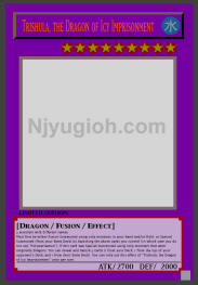 Trishula, the Dragon of Icy Imprisonment WATER / Dragon-Type Fusion / Level 9 / ATK 2700 / DEF 2000 3 monsters with different names Must first be either Fusion Summoned using only monsters in your hand and/or field, or Special Summoned (from your Extra Deck) by banishing the above cards you control (in which case you do not use "Polymerization"). If this card was Special Summoned using only monsters that were originally Dragons: You can reveal and banish 3 cards (1 from your Deck, 1 from the top of your opponent's Deck, and 1 from their Extra Deck). You can only use this effect of "Trishula, the Dragon of Icy Imprisonment" once per turn. ULTRA RARE |